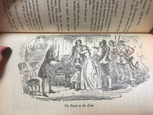 A Tale of Two Cities is a work of historical fiction, and it takes place between London and Paris (those are the titular ‘two cities’) in the 1780’s and 90’s. I was drawn to it because I love A Christmas Carol (the book) and also because I was curious to see what Dickens, a man writing in the 1850’s, had to say about the late 18th century. The equivalent would be someone now writing about the 1960’s. There’s still a removal of time, but a much smaller one than if it were me or you writing about the 18th century.