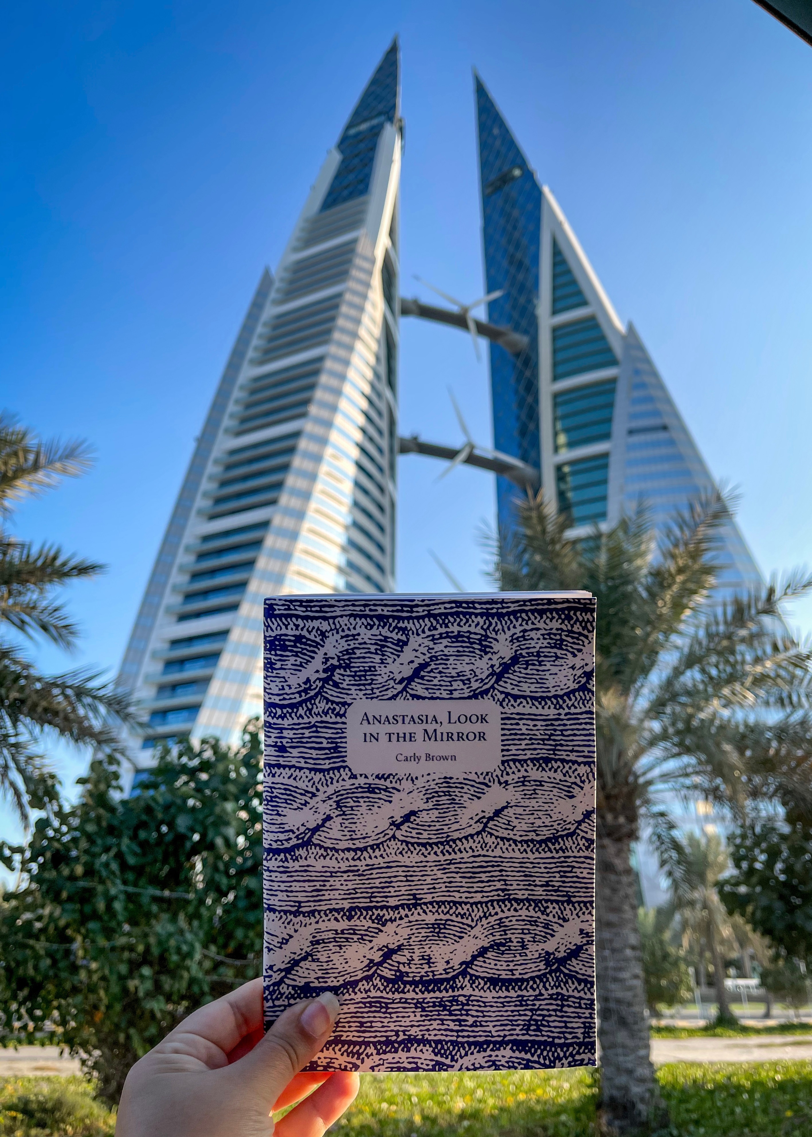 Anastasia travels to Bahrain! My friend Laala generously took this photo in front of the Bahrain World Trade Centre (which, fun fact, is apparently the first skyscraper in the world to integrate wind turbines. So cool!)