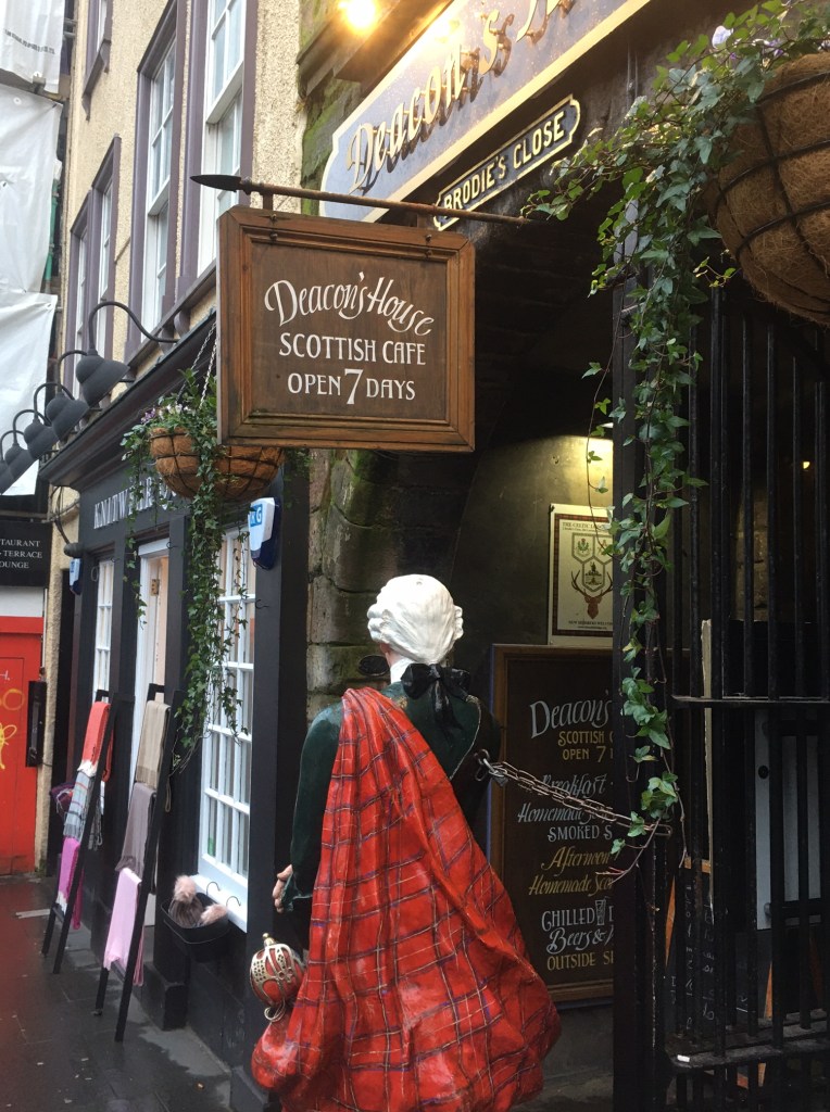 And speaking of Robert Louis Stevenson, we also saw Brodie’s Close, named after the Brodie family. Deacon Brodie was an unusual guy: upright citizen by day and burglar by night. He was the inspiration for Stevenson’s novella: The Strange Case of Dr. Jekyll and Mr. Hyde!