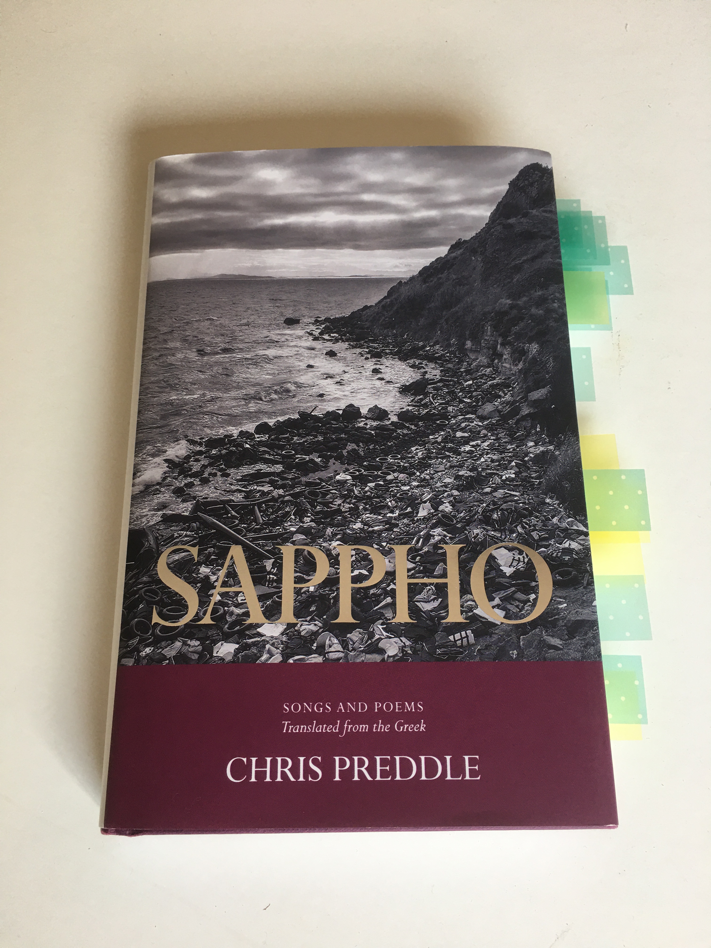 And I’m delighted to report that it did all that and more! Along with translating the bulk of Sappho’s surviving poetry into English, Preddle also provided a concise and handy introduction and afterword which contextualized Sappho, her life and times, and some of the challenges in translating this ancient poet’s work.