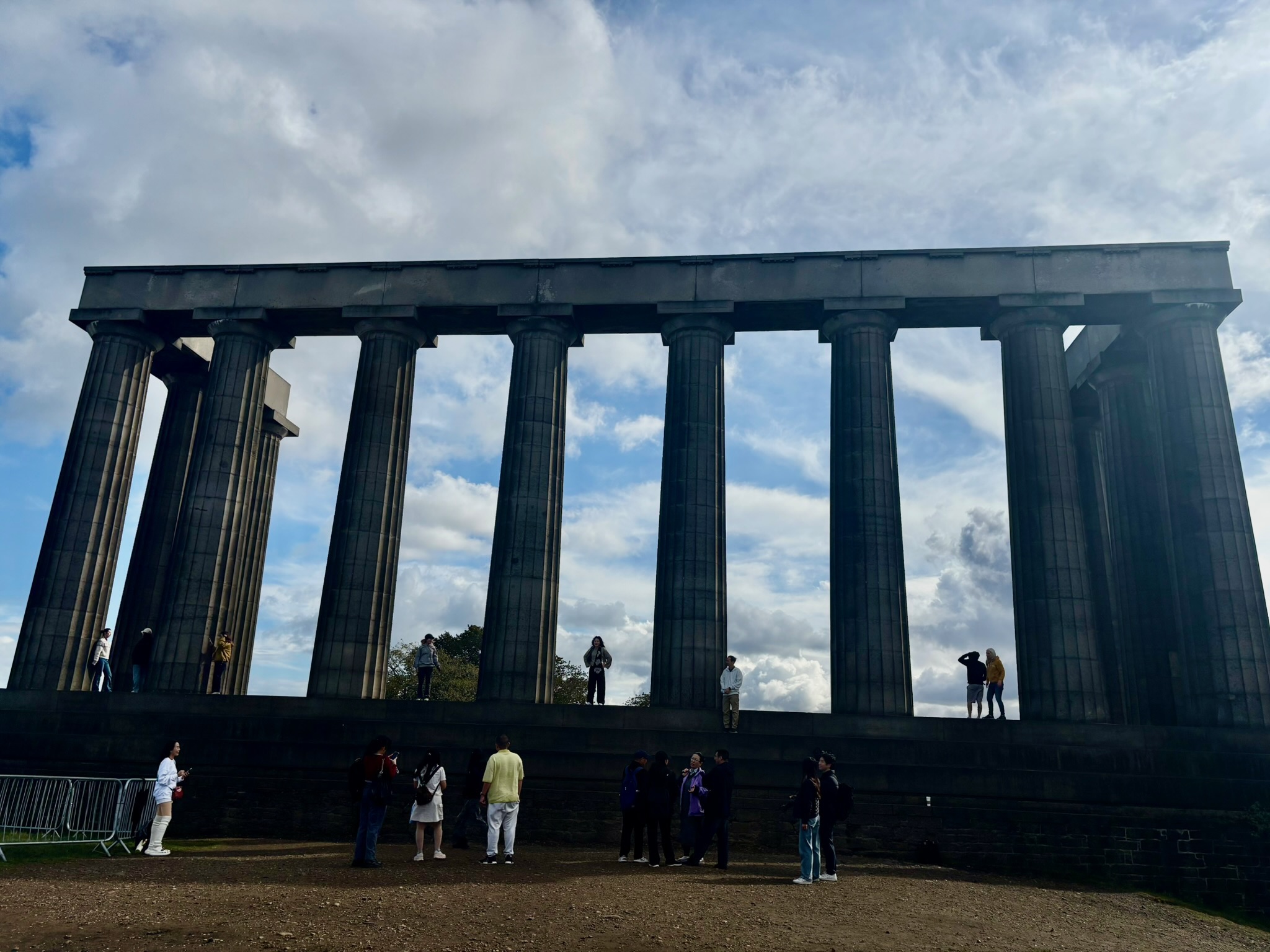 To understand what makes this monument so quirky, you have to know that, in the 19th century, and even sometimes still today, Edinburgh was referred to as the “Athens of the North”. So Calton Hill was meant to be our answer to the acropolis. The famous (and unfinished) national monument was meant to be like the Parthenon in Athens. Construction began in 1826 and it was intended to commemorate the Scottish servicemen who died fighting Napoleon. But building halted just a few years later sadly due to lack of money and it was never finished.