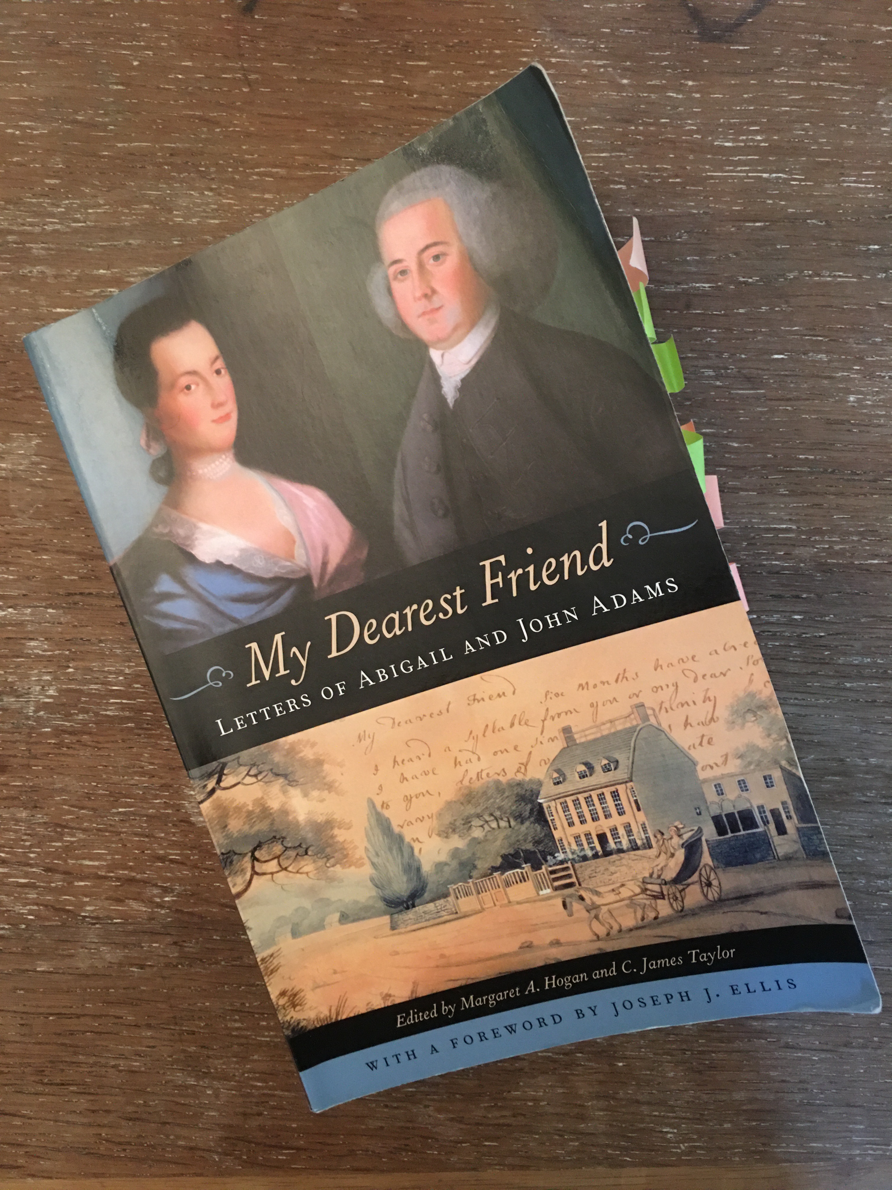• Most of the quotes from this post came from My Dearest Friend: Letters of Abigail and John Adams, edited by Margaret A. Hogan and C. James Taylor (which is an entertaining read and, I kid you not, more romantic and exciting than a lot of novels I’ve read)